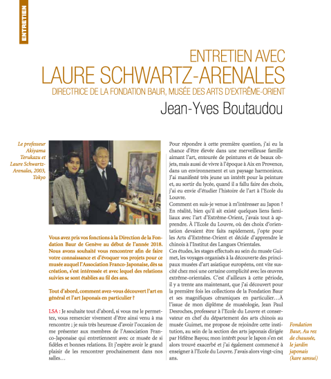 This year also marks the 60th anniversary of the opening of our museum to the public. It was on 9 October 1964 that the Baur Foundation, Museum of Far Eastern Art, was inaugurated, the only museum in Switzerland exclusively dedicated to art objects from China and Japan. "We can thus imagine the joy and pride that Alfred Baur, its founder, would have felt upon receiving from the Japanese government a prize that honors his museum; an emotion that unites all the people who for 60 years have continued to preserve and bring this heritage to life.